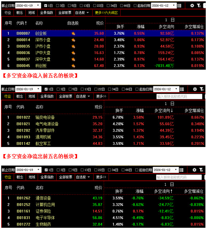 (1月19日午评,北京指南针科技发展股份有限公司提供)